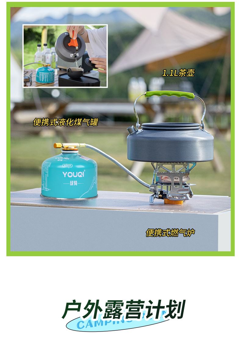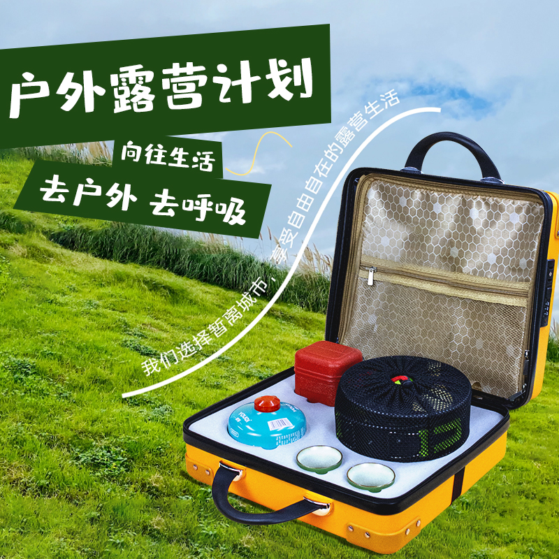 行李箱:16寸 竹節杯:60ml×2只 燃氣爐:便攜式 燃氣瓶:230g(可燃燒1~2個小時) 小茶壺組合套鍋:1.1L茶壺+700ml煎鍋+1.6L中鍋+飯鏟+碗×3只+折疊勺+絲瓜瓤