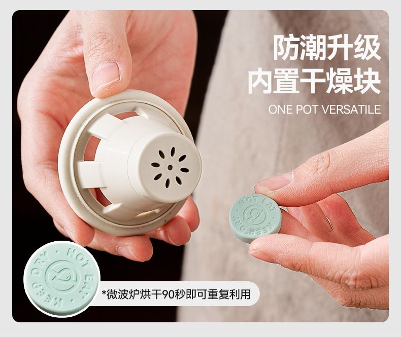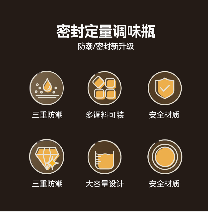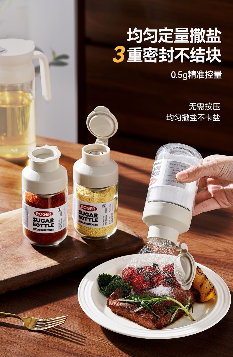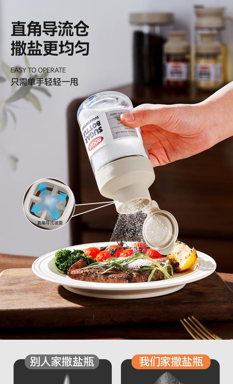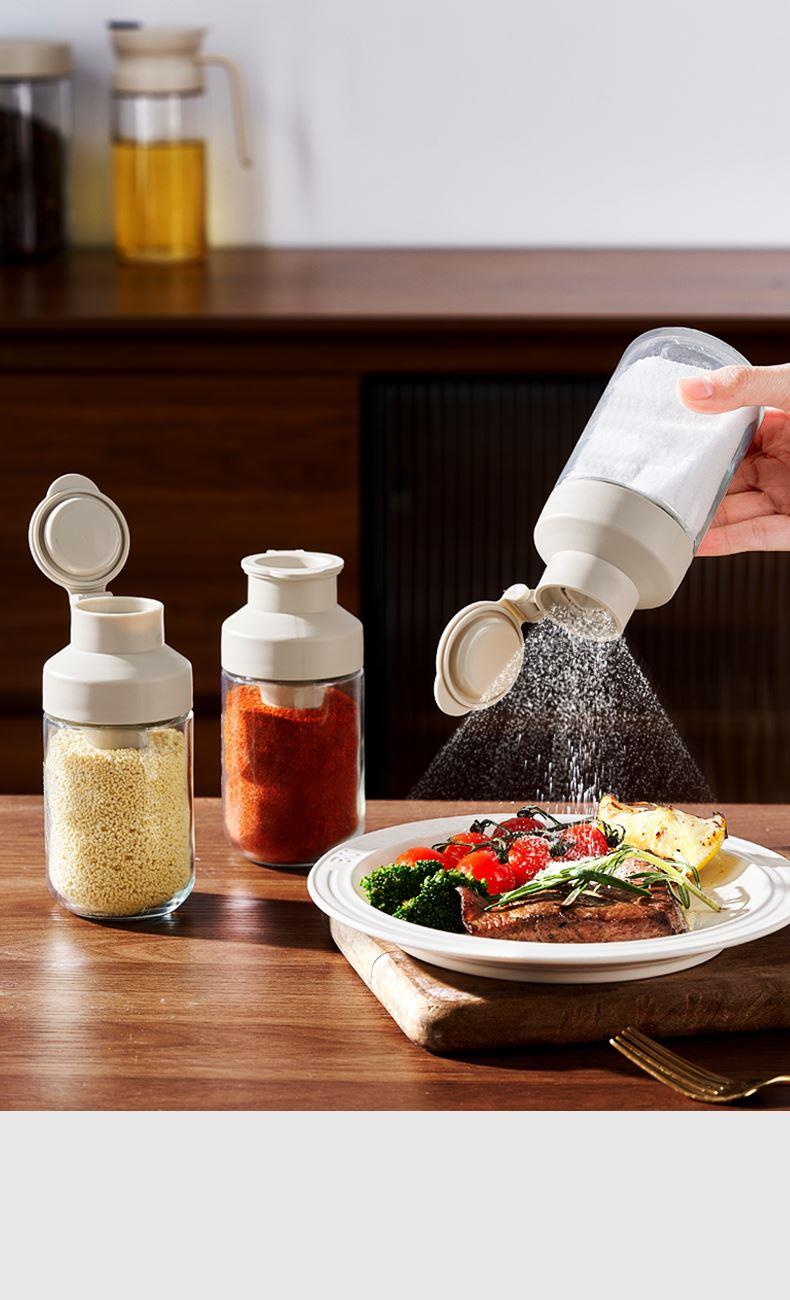均勻定量撒鹽,3重密封不結塊 創新結構+強防潮,三重密封 有效防潮 直角導流倉撒鹽更均勻,防潮升級內置干燥塊 一體式翻蓋再不擔心亂丟,密封更牢 蓋子不怕丟 不止裝鹽多調料可裝,定量控鹽享受健康生活