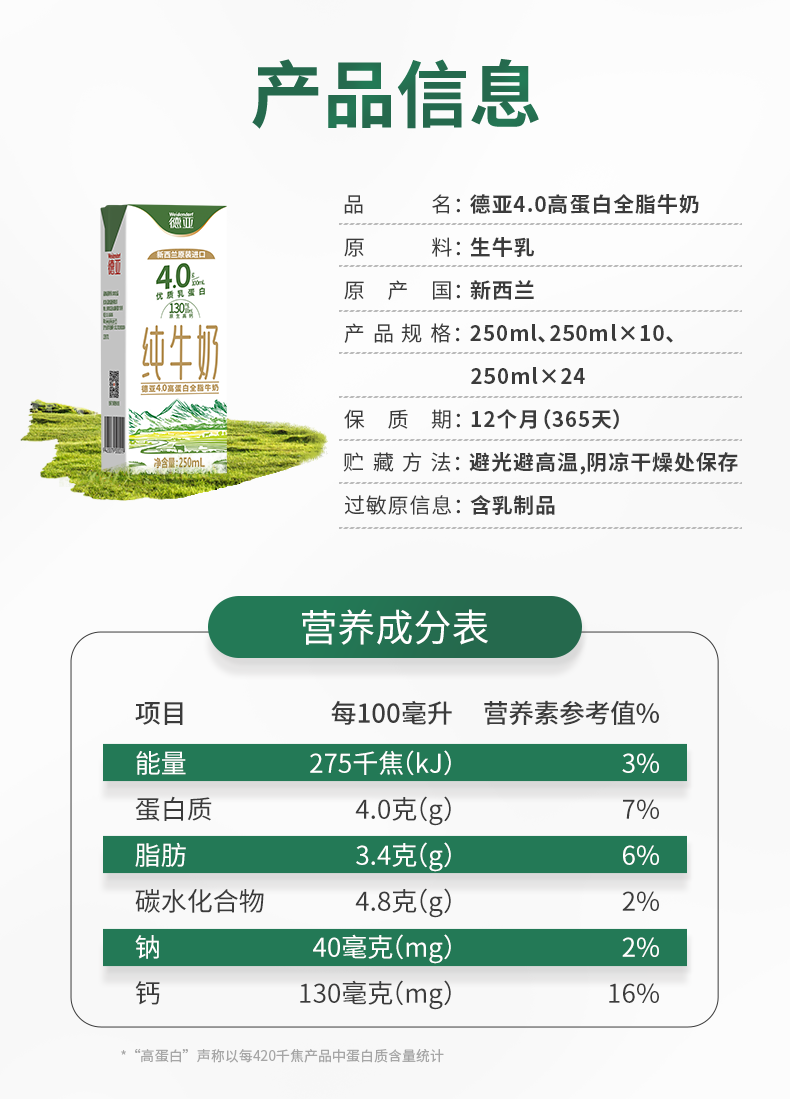 4.0高蛋白全脂牛奶 ,產地新西蘭原裝進口