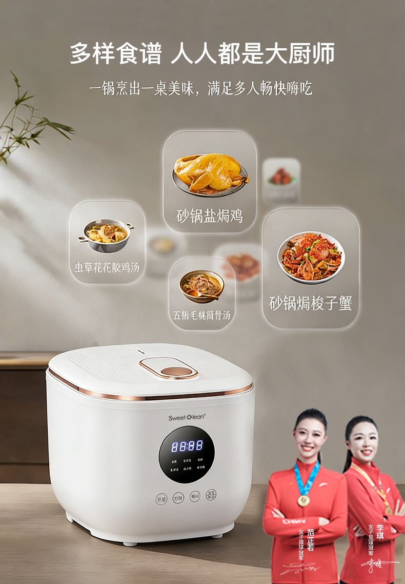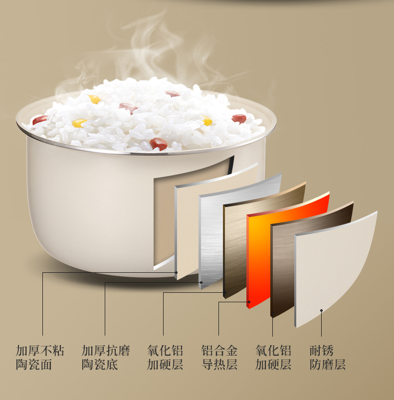 加厚陶瓷釉不粘內膽,傳熱快受熱勻,煮飯更香還易清洗