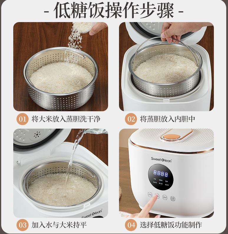智能蒸制低糖飯,減糖不減飯香,降低碳水 / 可溶性糖 / 還原糖,適配低糖飲食